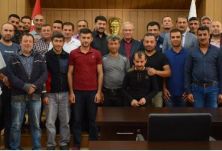 Zabıta müdürlüğüne bağlı olarak görev yapan ve kadroya giren temizlik personeli Belediye Başkanı Saffet Acar’a teşekkür ziyaretinde bulundu.