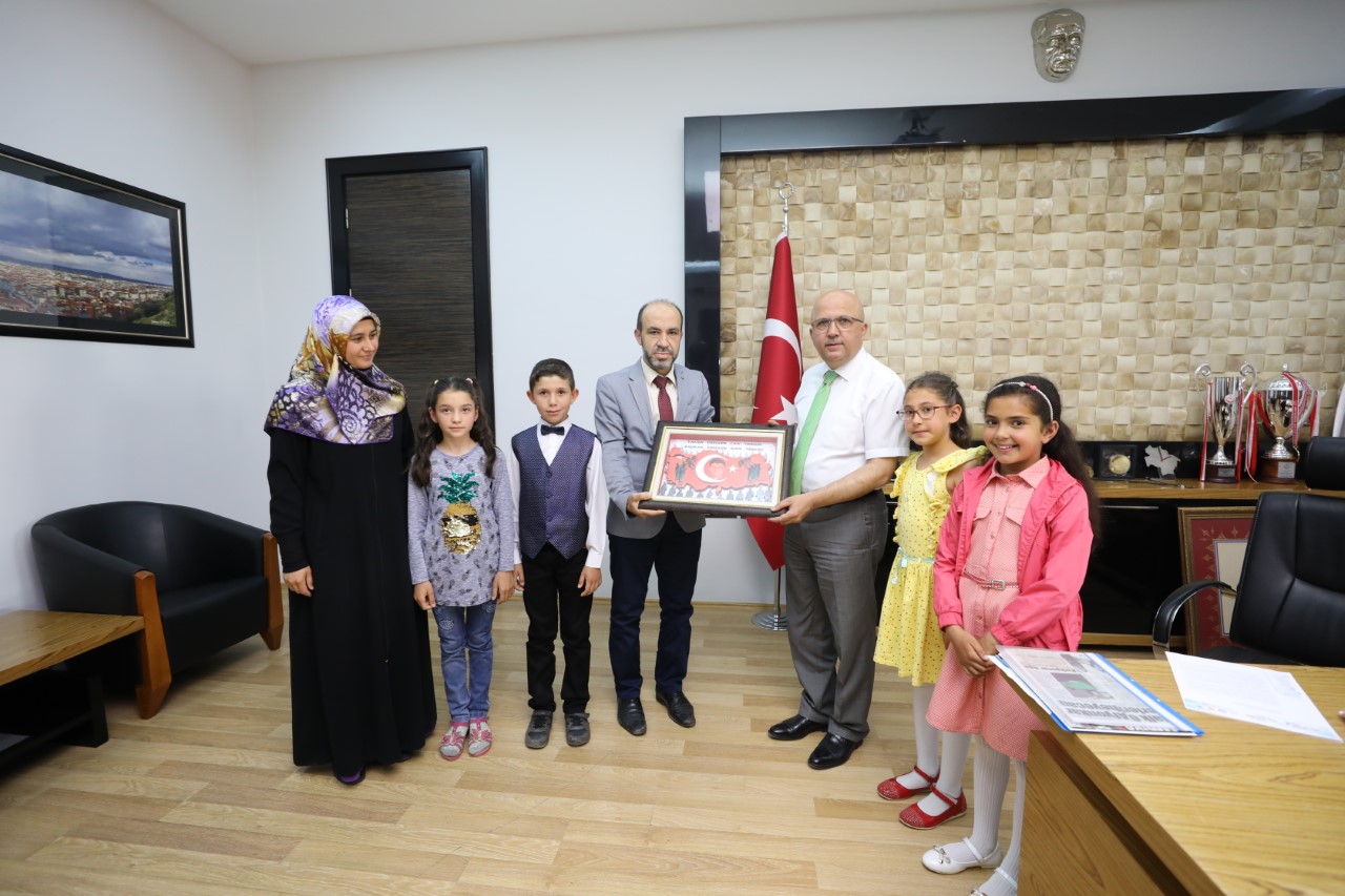 Belediye Başkanı Burhanettin Çoban, Işıklar Balı Sultan İlkokulu idareci ve öğrencilerini makamında kabul etti. Ziyarete Okul Müdürü Abdullah Baydur’un yanı sıra dördüncü sınıf öğrencileri katıldı. Ziyarette Okul Müdürü ve Öğrenciler Kahraman Mehmetçiğimize destek amacıyla “Cumhuriyet’in Kazanıldığı Topraklardan Ölümsüz Kahramanlara” isimli proje kapsamında 81 ilin İl Jandarma Komutanlıklarına takdim edilmek üzere hazırladıkları rölyef tabloları gönderecekleri törene Belediye Başkanı Burhanettin Çoban’ı davet ettiler. Böylesi anlamlı bir projeden dolayı Işıklar Balı Sultan İlkokulu idareci ve öğrencilerini tebrik eden Başkan Çoban, çalışmalarında başarılar diledi.