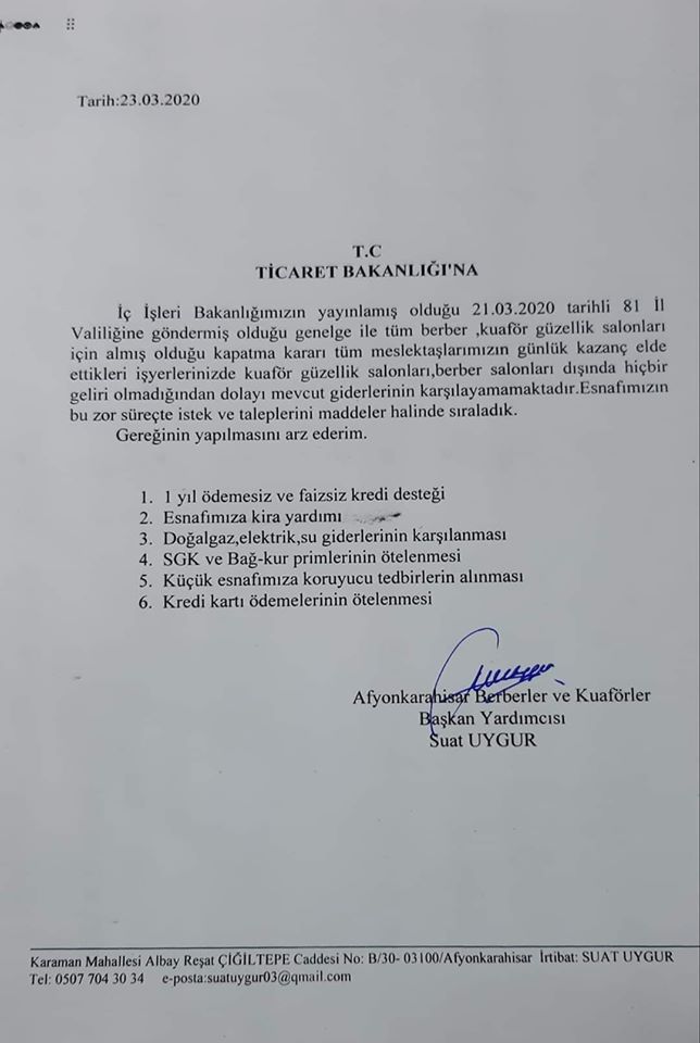 Bu salgın nedeniyle iş yerleri ve faaliyetleri tamamen durdurulan okul servisi, kantin, berber,