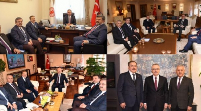 İlk olarak Cumhurbaşkanlığı Starteji ve Bütçe Başkanı Naci Ağbal ile görüşen Milletvekilleri ve Başkan Zeybek daha sonra Ulaştırma Bakanı Mehmet Cahit Turhan, Kültür ve Turizm Bakanı Mehmet Nuri Ersoy ve Gençlik ve Spor Bakanı Dr. Mehmet Muharrem Kasapoğlu ile bir araya geldi.