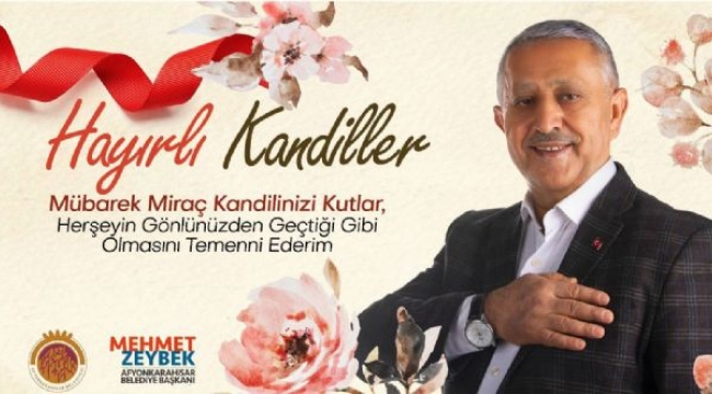 Belediye Başkanı Mehmet Zeybek, Miraç Kandili dolayısıyla bir mesaj yayınladı. Başkan Zeybek, manevi gecelerin, insanlar arası dostluk ve kardeşliğin gelişmesinde büyük katkısı olduğunu söyledi.