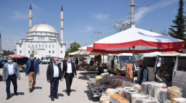 Koronavirüs salgınıyla mücadelede Afyonkarahisar genelinde alınan tüm tedbirleri takip eden Belediye Başkanı Mehmet Zeybek, Çarşamba Pazarını ziyaret etti. Zabıta ekiplerinden bilgi alan Başkan Zeybek, salgına karşı alınan tedbirlerin uygulanması ve sosyal mesafenin korunması hakkında talimatlarda bulundu. Vatandaşlara da uyarılarda bulunan Başkan Zeybek: “Tedbirlere uyduğumuz ölçüde sağlıklı kalırız ve bu virüsün daha fazla kişiye bulaşmasına engel oluruz. Lütfen zorunlu olmadıkça dışarı çıkmayalım, sosyal mesafeyi koruyalım, temizlik ve maske kullanımı gibi tüm önlemlerimizi alalım. Koronavirüsle mücadelemizde başarılı bir sınav verelim” dedi.