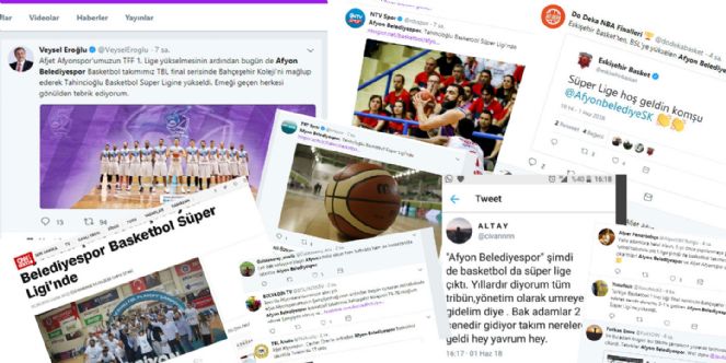 Spor Toto 1. Lig'e yükselme başarısını gösteren AFJET Afyonspor ile birlikte ilimizin basketbolda da Türkiye’nin sayılı kulüpleri arasına girdiğini yansıtan internet sayfaları, adeta göğsümüzü kabarttı. Ulusal medyanın yanı sıra, tarihi başarı sosyal medya Twitter’de de TT oldu.