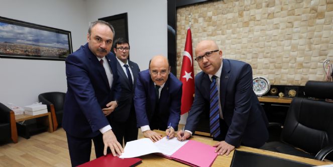 En düşük maaş alan memurun 440 lira ilave ücret alacağı sosyal denge tazminatı Başkanlık makamında, Belediye Başkanı Burhanettin Çoban ile BEM-BİR SEN Genel Başkanı Mürsel Turbay arasında imzalandı.