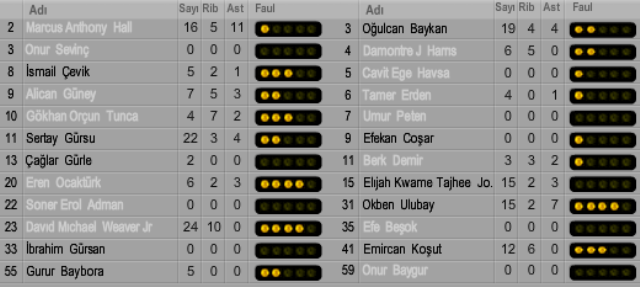 9. galibiyetini alan Afyon Belediye'de David Weaver 24 sayı-10 ribaund ve Sertay Gürsu 22 sayı- 3 ribaund- 4 asistle mücadele etti. 12. mağlubiyetini alan Pertevniyal Gençlik'te ise Oğulcan Baykan 19 sayı- 4 ribaund- 4 asist, Okben Ulubay 15 sayı- 2 ribaund- 7 asist ve Elijah Johnson 15 sayı- 2 ribaund- 3 asistle oynadı>>KURTULUŞ