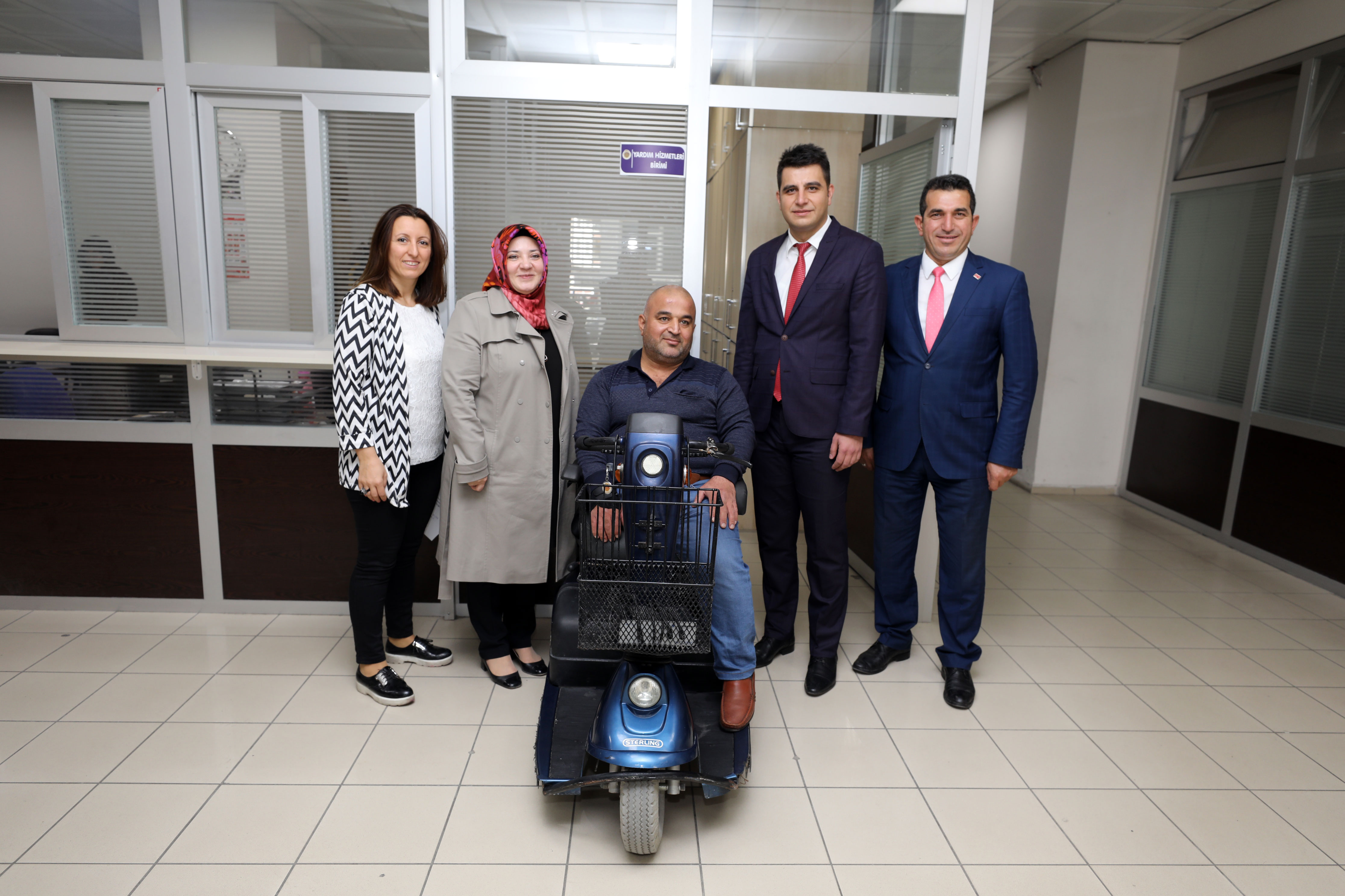Bu doğrultuda geçtiğimiz günlerde, engelli bir bireyin yaşadığı aileye yönelik gerçekleştirilen ziyarette, zor şartlarda hayatını sürdüren engelli vatandaşa akülü araç sözü veren Başkan Çoban, çok kısa sürede bu sözünü yerine getirdi.