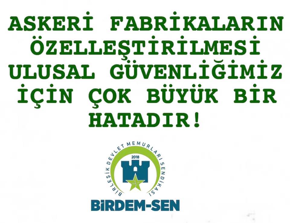 Buradan Hükümet yetkililerine sesleniyoruz; Dünyada Askeri Fabrikalarını özelleştiren bir tane büyük devlet yoktur. Amerika ve İngiltere bunu denemiş ancak yanlış olduğunu farkedince tekrar eski düzene geçmişlerdir. Gelin bu hatadan bizde vazgeçelim, Askeri Fabrikaları özellleştirmenin hatalı bir karar olduğunu çok acı bir tecrübeyle yaşamak zorunda kalmayalım.