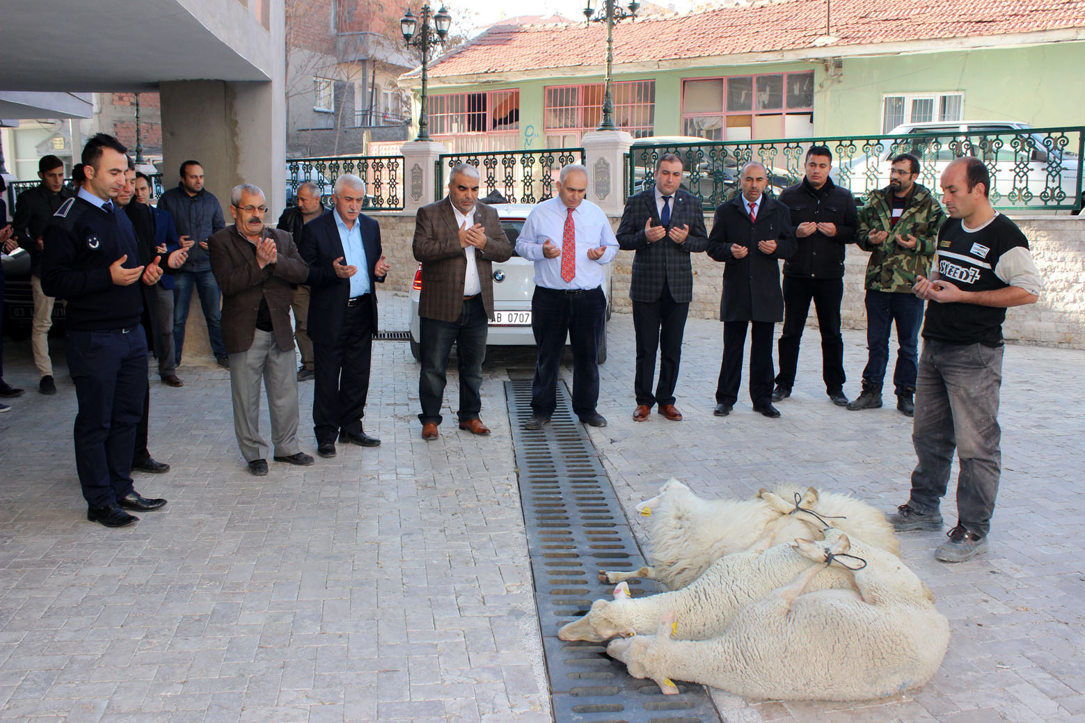 Emirdağ Belediyesi kendi arasında topladığı paralarla 3 kurban kesti. Belediye Başkanı Uğur Serdar Kargın'ın da katıldığı törende, Karani Korkmaz hoca tarafından dualar edildi.