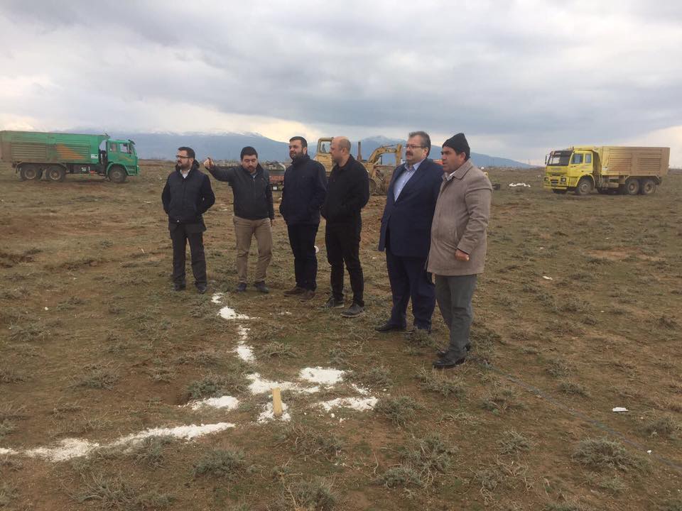 Yer teslimi ve çalışmaları yerinde inceleyen Akpartili heyet ilk hafriyat çalışmasına da refakat ederek ilk kazma vurulduğu sırada işin başında bulundu.