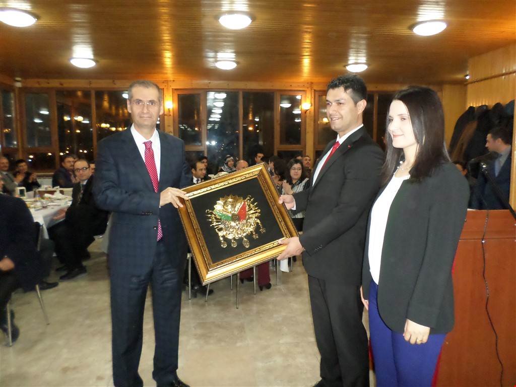 Yemeğin ardından çalışmalarından dolayı Ağır Ceza Reisi Hüseyin Sabuncuoğlu ve eşi, Sulh Ceza Hakimi Aslıhan Sabuncoğlu’na teşekkür eden kaymakam Eskin, Osmanlı arması hediye etti.◄Arif Yağcı