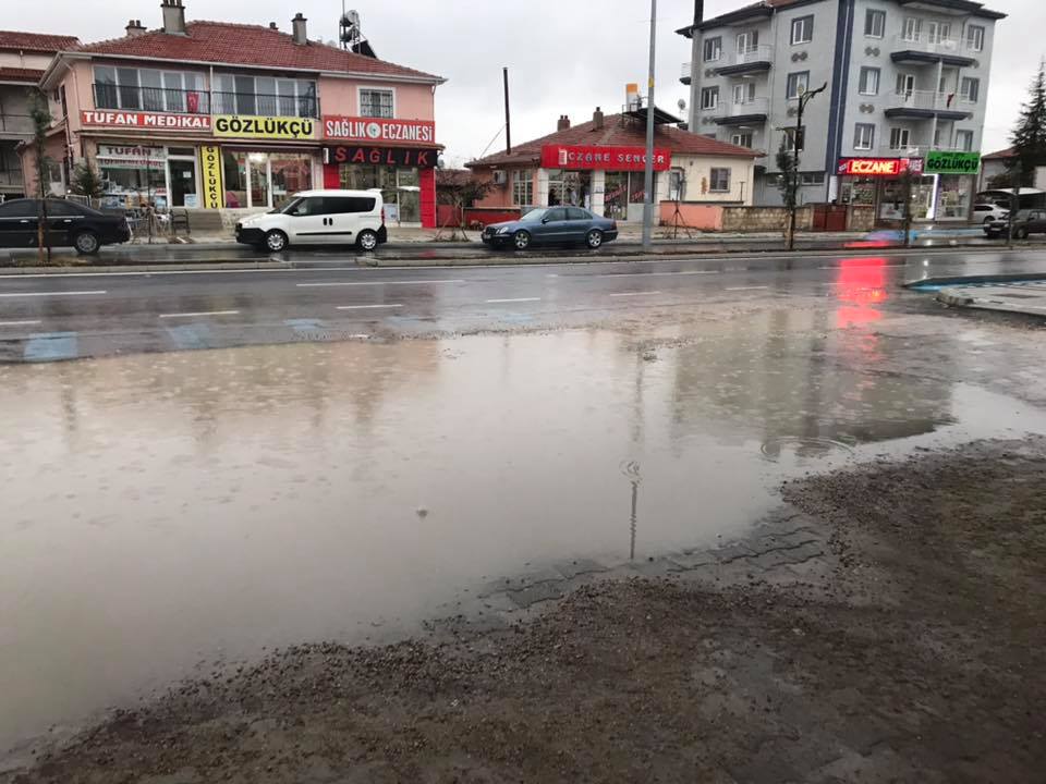 Bolvadin Devlet Hastanesi girişi Bolvadin'de başlayan ve devam eden hafif sağnak yağmurda göle döndü.