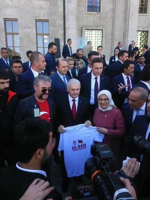 KURTULUŞ-Bolvadinli Nihat Gūnday Başbakan'a ER-BAH (Erdoğan-Bahçeli) yazan tişört hediye etti. Üzerinde 15 Temmuz hain darbe girişimini engelleyen kahramanlar olduklarını ifade eden bir yazıyla birlikte 15 Temmuz logosu ve Türk Bayrağı resmi de bulunan tişörtü AK Parti'nin grup toplantısı sonrası AK Parti Afyonkarahisar Milletvekili Hatice Dudu Özkal la birlikte Başbakan'a Binali Yıldırım’a hediye etti. Gūnday grup toplantısının TV’lerde canlı olarak yayınlanırken Bolvadin’den geldiğini ve yanında getirdiği tişörtü hediye etmek isteğini söyleyerek, Türkiye’nin gündemine oturdu. Başbakan Yıldırım da ‘Bolvadin Kaymağı’ vurgusu yaparak, Nihat Gūnday i yanına davet etti. Günday, Bolvadin’in ismini TV'lerden tüm Türkiye'ye duyurmayı başardı.