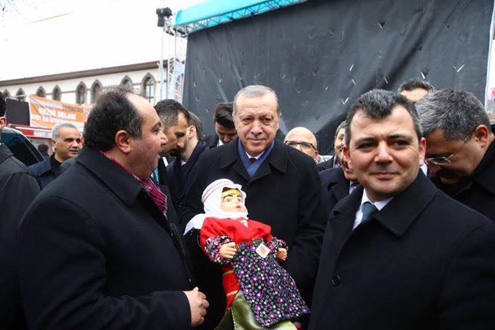 Ak parti milletvekili adayı cengiz sağlam ve emirdağ ilçe başkanı serkan koyuncu Cunhurbaşkanı erdoğana emirdağ yöresine has say adı verilen kıyafeti giymiş sayalı bebek hediye ettiler.