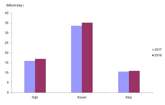 Küçükbaş hayvan sayısı 2018 yılında bir önceki yıla göre %4,1 oranında artarak 46 milyon 117 bin baş olarak gerçekleşti. Küçükbaş hayvanlar arasında yer alan koyun sayısında bir önceki yıla göre %4,5 oranında bir artış meydana geldi ve 35 milyon 195 bin baş olarak gerçekleşti. Keçi sayısında ise yine bir önceki yıla göre %2,7 oranında bir artış meydana geldi ve 10 milyon 922 bin baş olarak gerçekleşti.