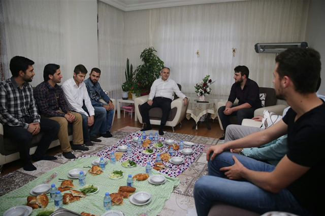 Gençlik ve Spor Bakanı Akif Çağatay Kılıç, Ankara'da bir öğrenci evinde gençlerin iftar konuğu oldu..Öveçler'deki öğrenci evinde aralarında Filistinli ve Bosna Hersekli öğrencilerin de bulunduğu 7 kişilik grupla iftar yemeğinde buluşan Bakan Çağatay Kılıç, iftar sofrasında gençlerle yakından ilgilenerek uzun uzun sohbet etti. Gazi Üniversitesi'nde okuyan gençlerle sıcak ve samimi bir ortamda gerçekleşen iftar yemeği boyunca gençlerin gelecek planlarını dinleyen Bakan Çağatay Kılıç, onlara önerilerde bulundu.