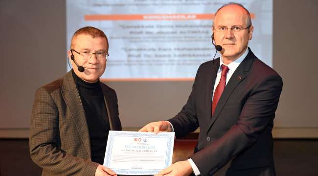 Kocatepe-Büyük Taarruz Uygulama ve Araştırma Merkezi Müdürü, Rektörlük Atatürk İlkeleri ve İnkılap Tarihi Bölüm Başkanı Prof. Dr. Sadık Sarısaman ise “ Çanakkale Kara Muhaberelerini” anlattı. Çanakkale Deniz Savaşlarından sonra Kara Savaşlarının başlayacağından Osmanlı Devleti tarafından tedbirler alındığını belirten Sarısaman, “5. Ordu Komutanlığına Liman Von Sanders Paşa geldi. 5. Ordunun 2 tane kolordusu var. Liman Von Sanders 4 tümenin 2’sini Saros Körfezi ve Bolayır’a gönderdi. 1 tanesini ihtiyatta tuttu. Sadece 19. Tümeni Kabatepe’den Seddülbahir’e olan alana yaydı. Liman Paşa’nın İtilaf Devletlerinin kara planı harekatını tam anlamıyla anlamadığı görülüyor. 15. Kolordunun komutanı da Alman General Weber’di. Onun tümenlerini de Kumkale ve Beşige tarafına yerleştirdi. 6 tümenin 4’ünü yanlış yere mevzilendirmiş. Liman Paşa, sadece 1 tane tümeni kullanıyor” ifadelerini kullandı.