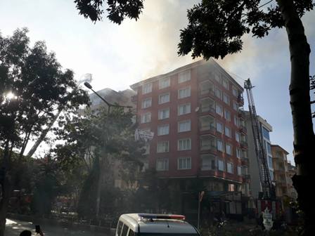 ÖMER BAĞLAN-Afyonkarahisar kent merkezinde bir apartmanın çatısında çıkan yangın korkulu anlar yaşanmasına neden oldu. Ordu Bulvarı’ndaki 6 katlı Şehribanoğlu apartmanında dün saat 16.30 sırlarında, mutfak tüpü patlamasından kaynaklandığı ileri sürülen yangın çıktı. Ahşap kaplı çatıda kısa sürede yayılan yangına Afyonkarahisar Belediyesi İtfaiye Müdürlüğü müdahale etti. Yangın kısa sürede kontrol altına alınırken, olay yerine gelen Belediye Başkanı Burhanettin Çoban, söndürme çalışma çalışmalarını izledi, yangının çıkış nedeni hakkında yetkililerden bilgi aldı. Yangında ölen ya da yaralanan olmazken, apartmanının çatısı tamamen yandı.