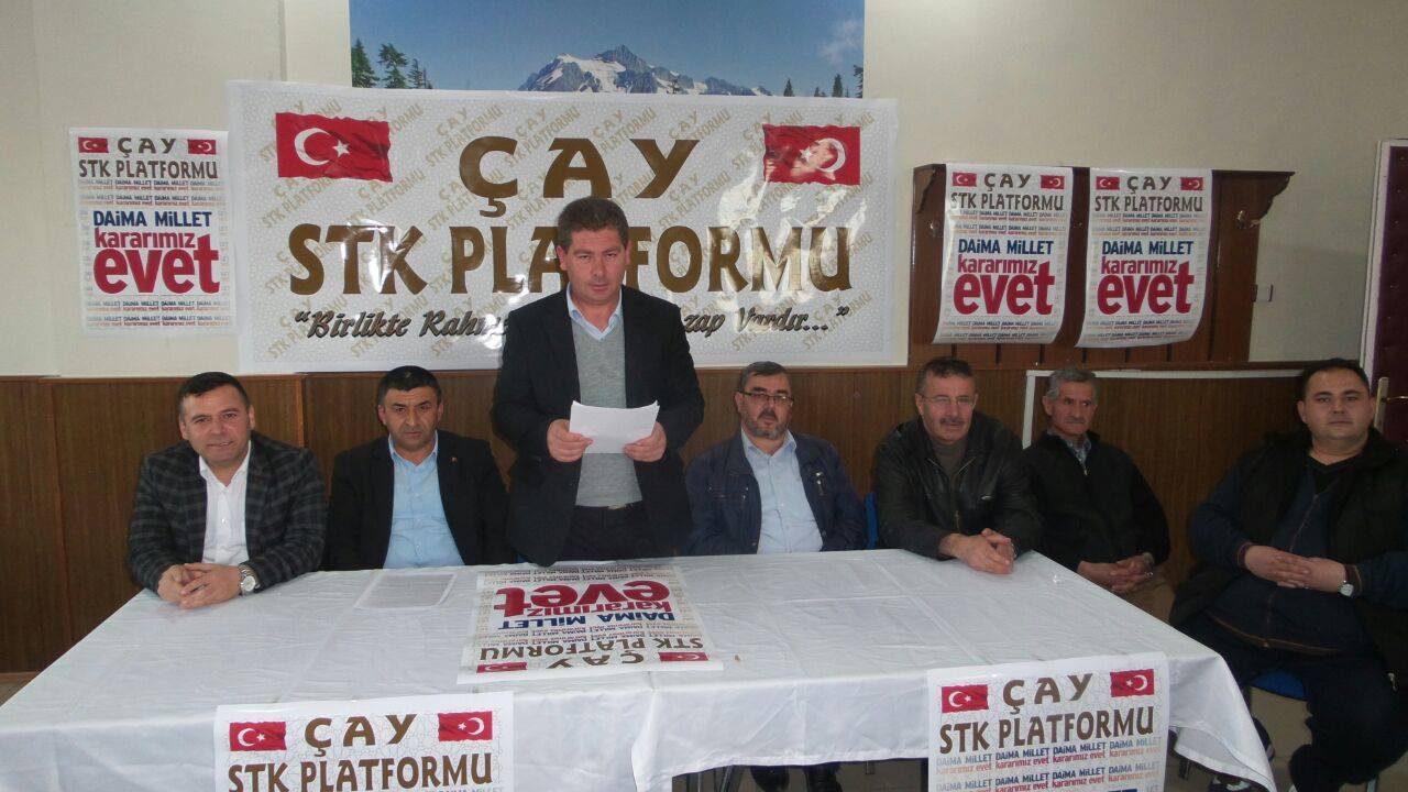 Bizler Çay’lı sivil toplum örgütleri olarak biliyoruz ki, güçlü bir Türkiye'ye, istikrarlı bir Türkiye'ye, her türlü vesayetten kurtulmuş bir Türkiye’ye karşı olan, tüm Türkiye düşmanları el ele ve işbirliği içinde yeni Anayasaya hayır diyorlar. İşte onlar hayır dediği için biz Evet diyoruz. Evet diyeceğiz.