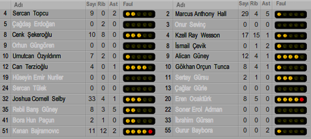 SOCAR: Cenk Şekeroğlu 10 sayı, 7 ribaund, Joshua Selby 31 sayı, 4 ribaund, 1 asist, Kenan Bajramovic 11 sayı, 12 ribaund, 2 asist Afyon Belediye: Marcus Hall 29 sayı, 4 ribaund, 5 asist, Ray Wesson 17 sayıu, 15 ribaund, 1 asist, Alican Güney 12 sayı, 4 ribaund, 1 asist ile oynadı.●Kurtuluş