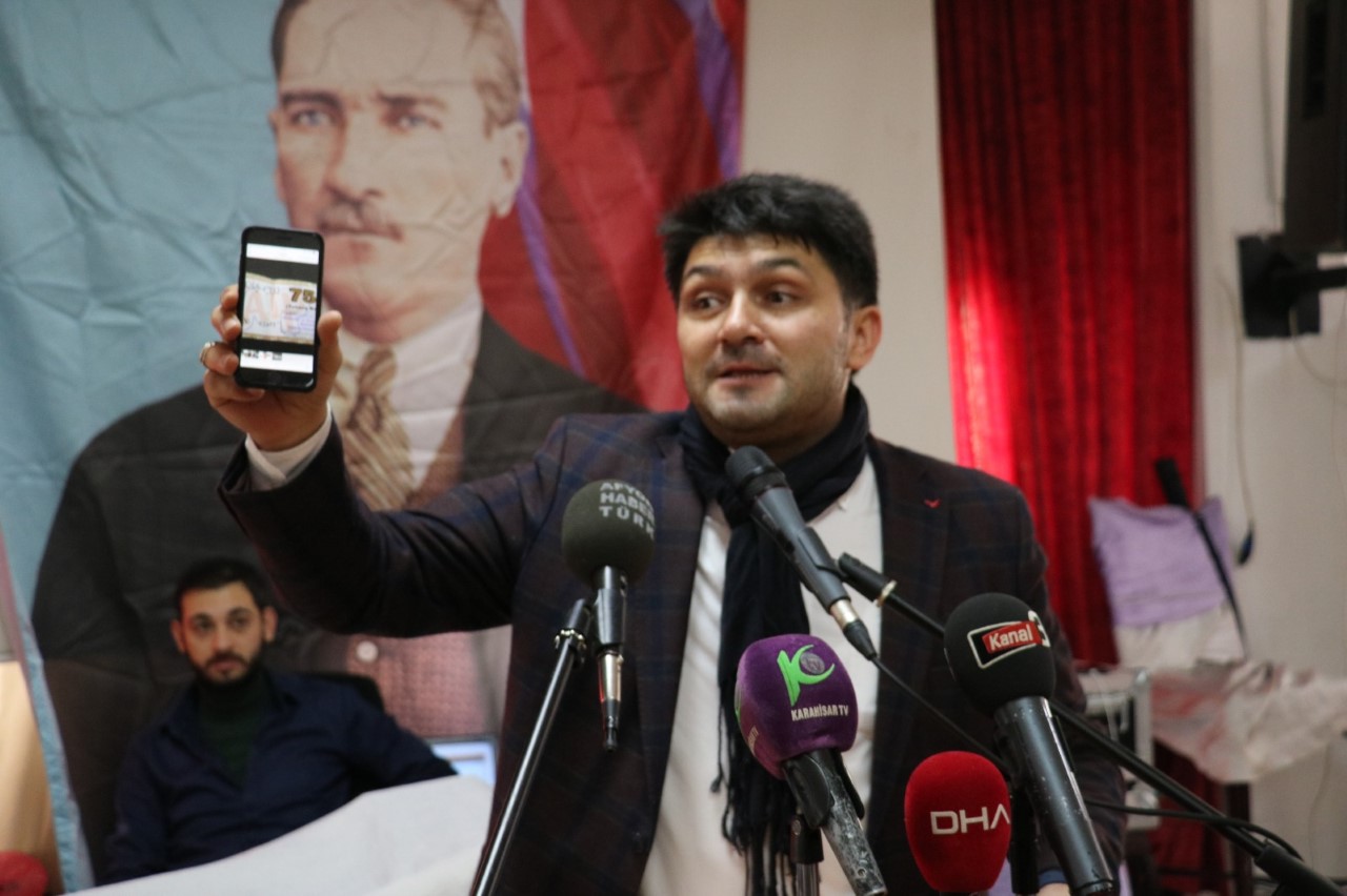 Afyonkarahisar’ın diğer komşu illere göre geri kaldığını söyleyen Çetinkaya, şimdiden alışveriş çeklerinin dağıtıldığını iddia etti. Basın mensuplarına ve salondakilere cep telefonundan seçime 2 ay kala vatandaşlara dağıtılan alış veriş çeklerini gösteren Çetinkaya, “Daha seçime 2 ay kala 75 TL’lik alış veriş market çekleri dağılmaya başladı. Halkımıza hayırlı uğurlu olsun. Şimdiden iyi günlerde yesinler diyoruz. Geçen seçimde de biz bunu yaşadık. Bu şehirde mutlu bir azınlığın bizimle olan mücadelesinden ibarettir. Muhtarlıklar aracılığıyla maalesef bu çekler dağıtılmaya başlandı. Ne yaparlarsa yapsınlar. 31 Mart akşamı kazan Afyonkarahisar olacaktır, kazanan MHP olacaktır” dedi.