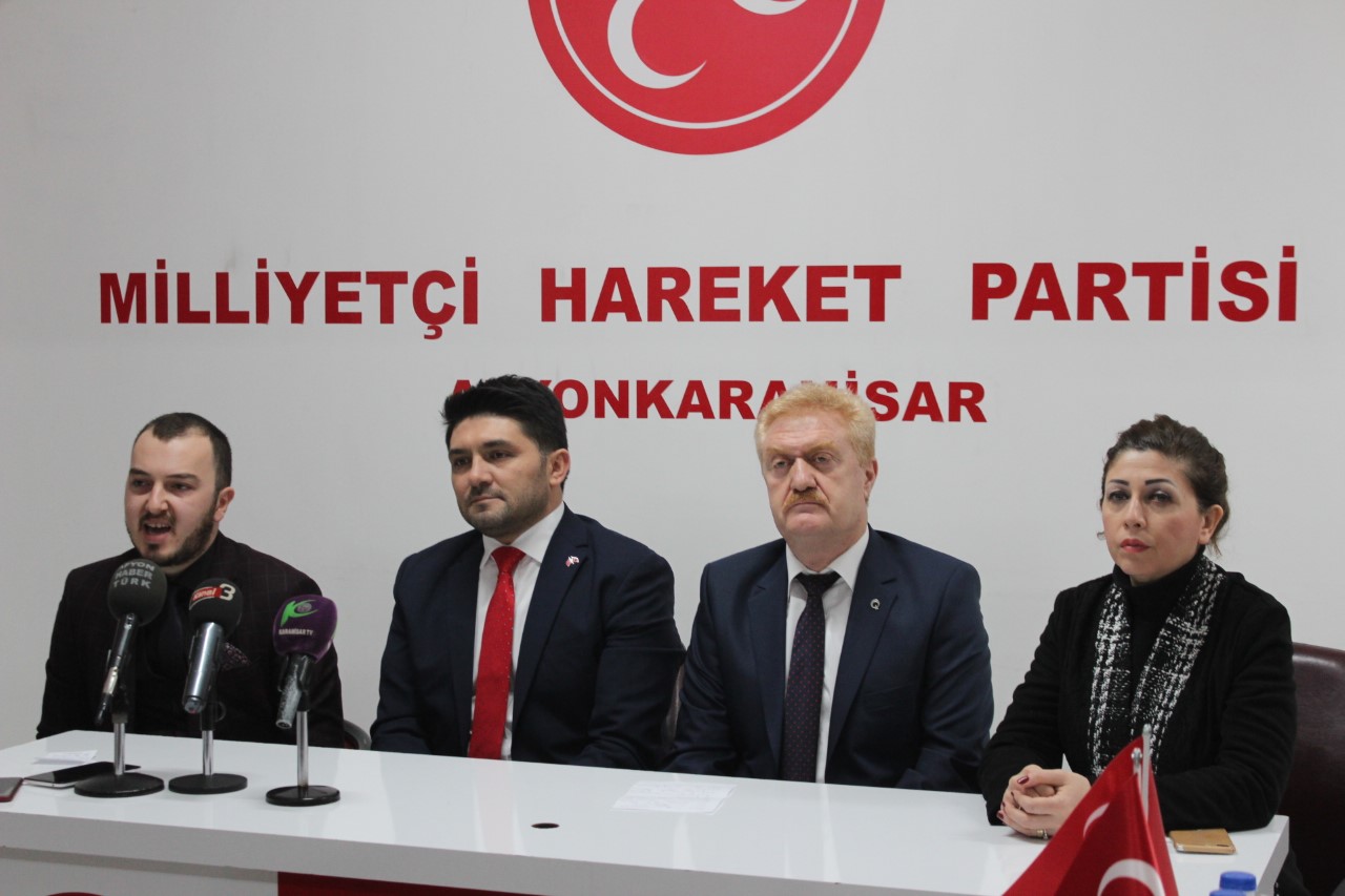 Milliyetçi Hareket Partisi (MHP) haftalık basın toplantısına İl Başkan Yardımcısı Mustafa Gün ve Gönül Ar Güngör, Merkez İlçe Başkanı Fahri Fevzi Kartal ve Afyonkarahisar Belediye Başkan Adayı Fatih Çetinkaya katıldı. MHP’nin 51 il de kendi adayları ile seçime gireceklerini ve bu 51 il içerisinde de Afyonkarahisar’ın da yer aldığını söyleyen MHP Merkez İlçe Başkanı Fahri Fevzi Kartal, İl genelinde 59 belediyenin tamamına talip olduklarını söyledi. MHP Lideri Devlet Bahçeli’nin Afyonkarahisar’ı istediğini de belirten Kartal, “Geçtiğimiz Salı günü Milliyetçi Hareket Partisi grup toplantısında Sayın Genel Başkanımız Dr. Devlet Bahçeli beyefendi yerel seçimlerle ilgili tekrar bir açıklama yaptı. Büyükşehir olmayan 51 il de MHP yerel seçimlere kendi adaylarımız ile girecektir. Afyonkahisar’da bu 51 ilin içinde yer almaktadır.1 ay önce Sayın Genel Başkanımızı ziyaret ettiğimizde bizden Afyonkarahisar’ı istediğini söyledi. Bizde Genel Başkanımızın bu sözünü yere düşürmemek üzere MHP Afyonkarahisar teşkilatları olarak il genelinde merkez belediye başta olmak üzere 59 belediyenin 59’una da talibiz. Allahın izniyle 31 Mart akşamı da büyük bir zaferle çıkacağımıza inanıyoruz” dedi.