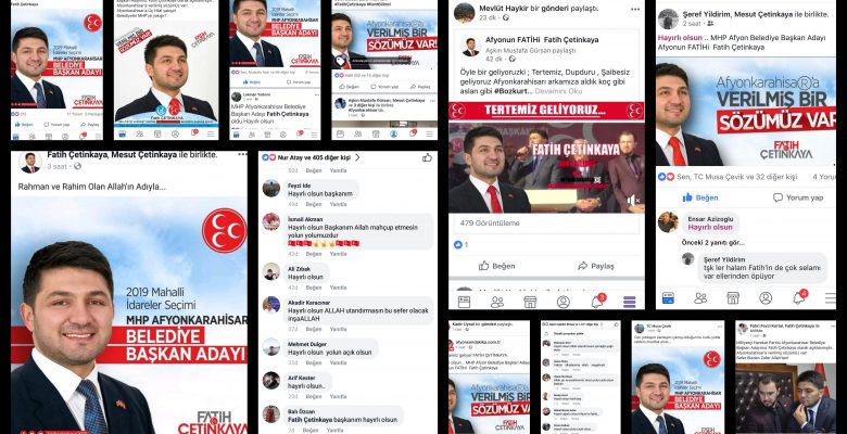Dün akşam saatlerinde kesinleşen habere göre Milliyetçi Hareket Partisi’nin Afyonkarahisar’da Belediye Başkan Adayı Fatih Çetinkaya oldu. Haberin yayınlanmasının ardından seçmenin yüzü güldü ve inanılmaz bir sevinç yaşadı. Fatih Çetinkaya’nın adeta tebrik yağmuruna tutulduğu ve yoğun bir telefon trafiği yaşadığı duyumunu aldık. Seçmen sosyal medya üzerinden de sevincini ve coşkusunu tüm hızlı gösteriyor. Her kesimden vatandaşın çeşitli paylaşımlar, yorum ve beğenilerle sosyal medya üzerinden Fatih Çetinkaya’yı tebrik ettiğini gördük. Paylaşımlar ve tebrikler kelimenin tam anlamıyla sosyal medyayı salladı. Çetinkaya’nın sevenlerine ait bazı yorum ve paylaşımları okurlarımızla paylaşmak istedik.