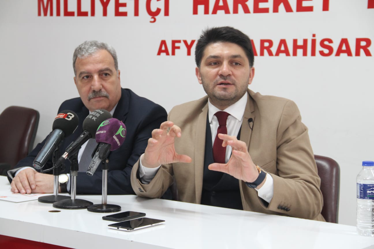 Milliyetçi Hareket Partisi (MHP) haftalık basın toplantısına İl Başkanı Mehmet Kocacan, MHP Afyonkarahisar Belediye Başkan Adayı Fatih Çetinkaya ve parti yönetimi katıldı. Seçim çalışmaları hakkında basına bilgiler veren İl Başkanı Mehmet Kocacan, “MHP Afyonkarahisar teşkilatı olarak il genelinde 52 belediye başkan adayımızı geçtiğimiz hafta düzenlenen aday tanıtım toplantısında kamuoyuna tanıttık. MHP olarak en çok aday çıkartan teşkilat biz olduk. Dazkırı, Evciler ve Sinanpaşa ilçelerinde aday çıkarmayarak, Cumhur İttifakına destek vereceğiz. Dinar ilçemizde ise ortak aday çıkartacağız. Dinar’da MHP Belediye Başkan Adayımız Nihat Sarı, Cumhur İttifakının adayının ortak adayı olmuştur. Bildiğiniz gibi Dinar Belediye Başkanı MHP’nin helal oylarıyla başkanlığa seçilmiş ama daha sonra diğer bir siyasi partiye geçmiştir. İnşallah Dinar’da zafer Cumhur İttifakının olacaktır. Geçtiğimiz haftasonu Dinar’da seçim ofisinin açılışına katıldık ve Dinar halkının Cumhur İttifakına olan ilgisine şahit olduk. Buradan diyebiliriz ki Dinar’da iş bitmiştir” dedi.