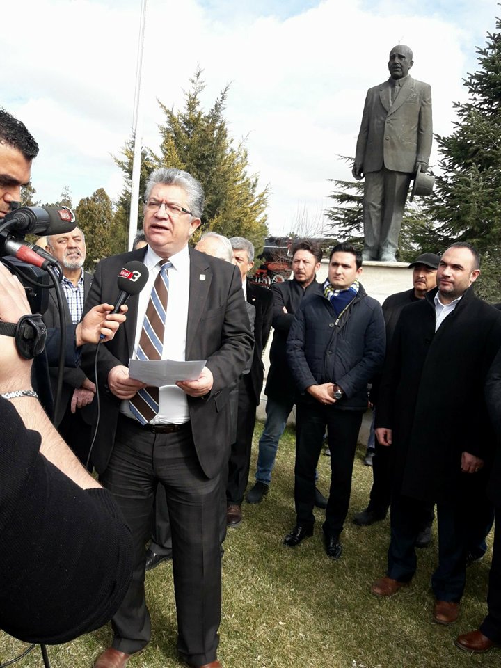 Vatan Haini İskilip Atıf Hoca’nın idam edilmesi üzerinden O’nu yıpratmaya çalışıyorlar. Geçtiğimiz yıllarda dönemin Başbakanı Anıtpark Meydanında Cumhurbaşkanı Ahmet Necdet Sezer’i yuhalattı, Ali Çetinkaya’ya, kel Ali, katil Ali diyerek yuhalattı. Bu ayıp bizlere yeter de artar. Bu ayıp tüm Afyonkarahisar’a yeter. İnsanlarımız ne çabuk galeyana geliyor. Burada toplanan tüm vatanseverler, Afyon’un gerçek temsilcileridir, Cumhuriyetin kazanıldığı topraklarda yaşayanların ruhunu temsil etmektedir.
