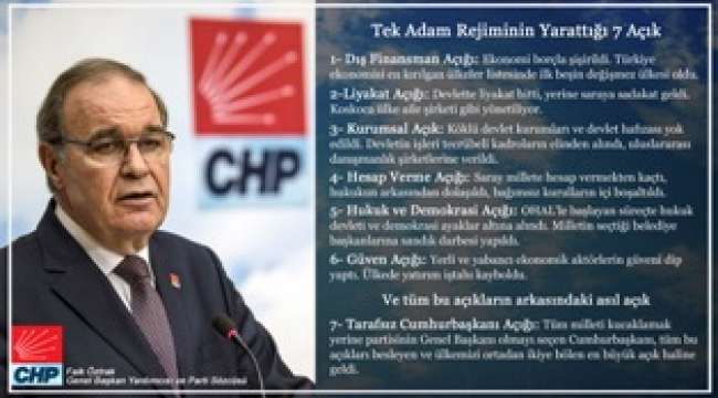 CHP Sözcüsü Öztrak : Saray Hükümeti 18 Yılda 7 Kritik Açık Yarattı
