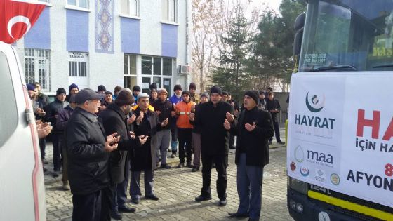Afyonkarahisar'ın Çobanlar İlçesinde,Hayrat Vakfı öncülüğünde Çobanlar'dan toplanan yardım malzemeleri Halep’e uğurlandı.