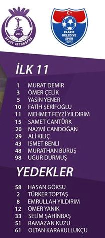 Afjet Afyonspor: 2- Elaziz Belediyespor: 1