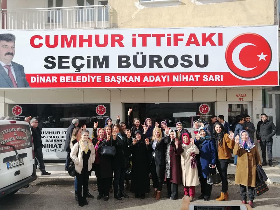 Büyüklerimiz belirttiği gibi burada da illet ittifakı zillet ittifakı dediğimiz büyüklerimizin adlandırdığı şekilde söylüyorum. Bu ittifaka karşı bizimde bir ittifak oluşturmamız gerekiyordu. Bizim alt kademe görüşmelerimiz vekillerimizin ve genel merkezlerimizin görüşmeleri neticesinde milliyetçi hareket partisi aday adayı mimar mühendis olan sayın adayımız Nihat Sarı arkadaşımız Ak Parti Dinar Belediye Başkanı Adayı olarak gösterildi. Bizlerinde genel merkezlerimizin aldığı bu karara yapabileceğimiz tek şey saygı göstermekti saygı gösterdik. Şimdi Nihat kardeşimiz cumhur ittifakının Adayı Ak Parti Adayı olarak gösterildi ve birlikte yola çıktık. Allah nasip ederse bugünkü toplanmamız bir başlangıç inşallah belediyeye giden yolda yarın büyük bir coşkuyla açılışımızı yapacağız. Gitmedik kapı sıkmadık el bırakmayacağız dinarın makûs kaderini değiştireceğiz. Biliyorsunuz dinara 10 yıldır hiçbir hizmet gelmedi. İnşallah hep birlikte el birliği ile küçük şeylere takılmadan birlik ve berberlik içiresinde biz bu işi götüreceğiz. Sizlerden ricam karşılıklı gerginlik yaşamadan küçük büyük şeylere takılmadan seçim sürecinde çalışmalarımızı anlatarak seçim sürecimizi tamamlayalım birlik olalım tek olalım Allah’ın izniyle bu belediyeyi alalım dedi.