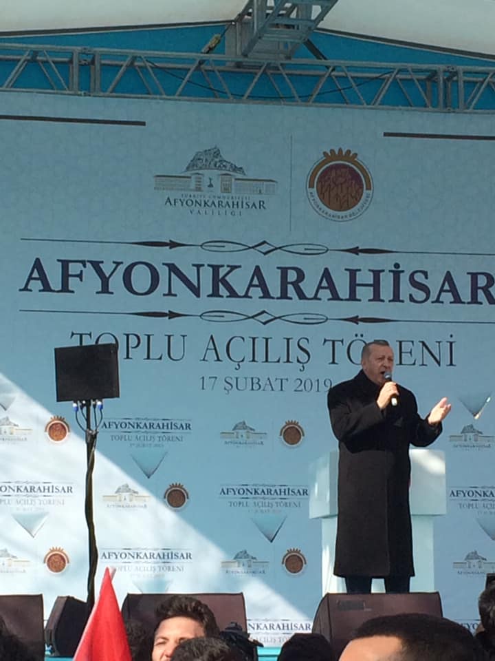 Türkiye Cumhurbaşkanı ve AK Parti Genel Başkanı Recep Tayyip Erdoğan, Afyonkarahisar Anıtpark meydanında düzenlenen toplu açılış törenine katıldı. Cumhurbaşkanı Erdoğan, konuşması öncesinde vatandaşları selamladı.