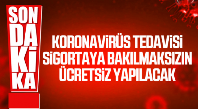 Koronavirüs tedavisine ilişkin çok önemli bir karara daha imza atıldı. Koronavirüse yakalanan tüm vatandaşların tedavisi sosyal güvencesi olup olmadığına bakılmaksızın ücretsiz olarak yapılacak.