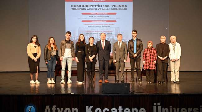 Afyon Kocatepe Üniversitesi (AKÜ) Rektörlüğü, Atatürk İlkeleri ve İnkılap Tarihi Araştırma ve Uygulama Merkez Müdürlüğü, Kocatepe-Büyük Taarruz Uygulama ve Araştırma Merkez Müdürlüğü, Atatürk İlkeleri ve İnkılap Tarihi Bölüm Başkanlığı ve Fen Edebiyat Fakültesi Tarih Bölüm Başkanlığı tarafından “Cumhuriyet’in 100. Yılında TBMM’nin Açılması ve Millî Egemenlik” paneli düzenlendi.