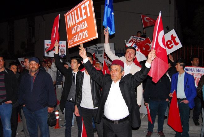 Türk bayrağı, Cumhurbaşkanı Erdoğan’ın resimlerinin olduğu flamalar ve AK Parti logolu bayraklar taşıyan vatandaşlar, AK Parti, Hükümet ve Cumhurbaşkanı Erdoğan lehine sloganlar attı. Araç konvoyları gece geç saatlere kadar sürdü.