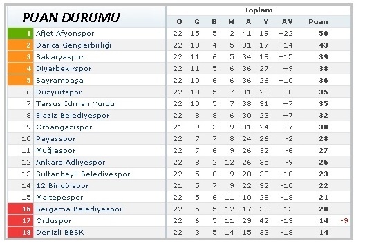 Afjet Afyonspor aldığı bu üç puanla 50 puana çıktı. En yakın rakibi Darıca Gençler Birliği ile arasındaki puan farkı böylece 7 ye yükseldi.●Ertuğrul Sevim-İsteniş Hakan Tüplek