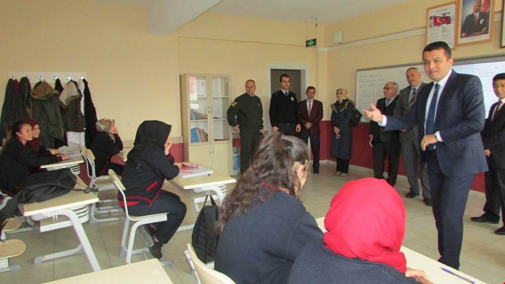 Okul müdürü, müdür yardımcıları ve öğretmenlerden; okulun fiziki durumu, ihtiyaçları ve çalışmaları hakkında bilgi alan Kaymakamımız Mehmet Keklik, sınıfları dolaşarak öğrencilerle de sohbet etti. Öğrencilere seçecekleri meslek dalları hakkında bilgiler aktardı.
