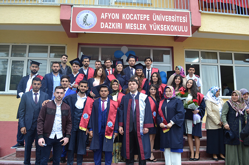 KURTULUŞ-Dazkırı Meslek Yüksekokulu 2016-2017 yılı mezuniyet törenine Dazkırı Kaymakam Vekili Necdet Uçar, Evciler Kaymakamı Fatih Sayar, Dazkırı Belediye Başkanı İsmail Taylan, protokol üyeleri, öğrenci velileri ve öğrencilerin katılımlarıyla gerçekleştirildi. Program saygı duruşu ve İstiklal Marşı'nın okunması ile başladı. Açılış konuşmasını yapan Dazkırı Meslek Yüksekokul Müdürü Doç. Dr. Harun Cansız tüm öğrencilere ve öğrenci velilerine emeklerinden dolayı teşekkür edip, bundan sonraki hayatlarında başarılar diledi. Dereceye giren öğrencilere mezuniyet belgelerinin ve ödüllerinin verilmesinin ardından öğrencilerin kep atmaları ile tören sona erdi.