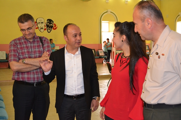 Sergi açılışına katılan Belediye Başkanımız Görsel Sanatlar Öğretmeni Safiye Çivril eşliğinde öğrencilerin yıl boyunca yapmış oldukları resim ve el sanatları çalışmalarını tek tek inceleyerek öğrencilerden bilgi aldı.