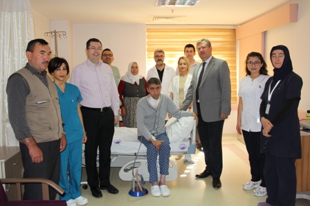 Sağlığına kavuşan R.Y.’ yi ziyaret ederek geçmiş olsun dileklerini ileten Afyonkarahisar Kamu Hastaneleri Birliği Genel Sekreteri Uzm. Dr. Murat Çağlayan, vatandaşlarımızın sağlığı bizim mutluluğumuzdur diyerek, emeği geçenlere özverili çalışmaları için teşekkür etti.