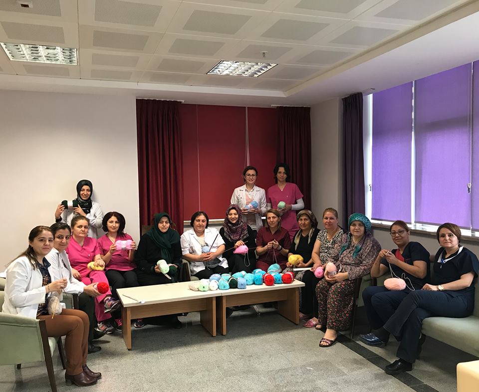 Çalışanlar ve hasta yakınları "70’den 7’ye Sevgi Yumağı Projesi" kapsamında kimsesiz çocuklarımıza el örgüsü giyecekler hazırlıyor. Proje ile uzun süre Palyatif Bakım Merkezinde yatan hastaların refakatçilerinin, hastanede kaldıkları sürede farklı etkinlikler ile kaliteli zaman geçirmeleri, moral ve motivasyonlarının arttırılması hedeflenirken hasta personel arası iletişiminin de artması bekleniyor.