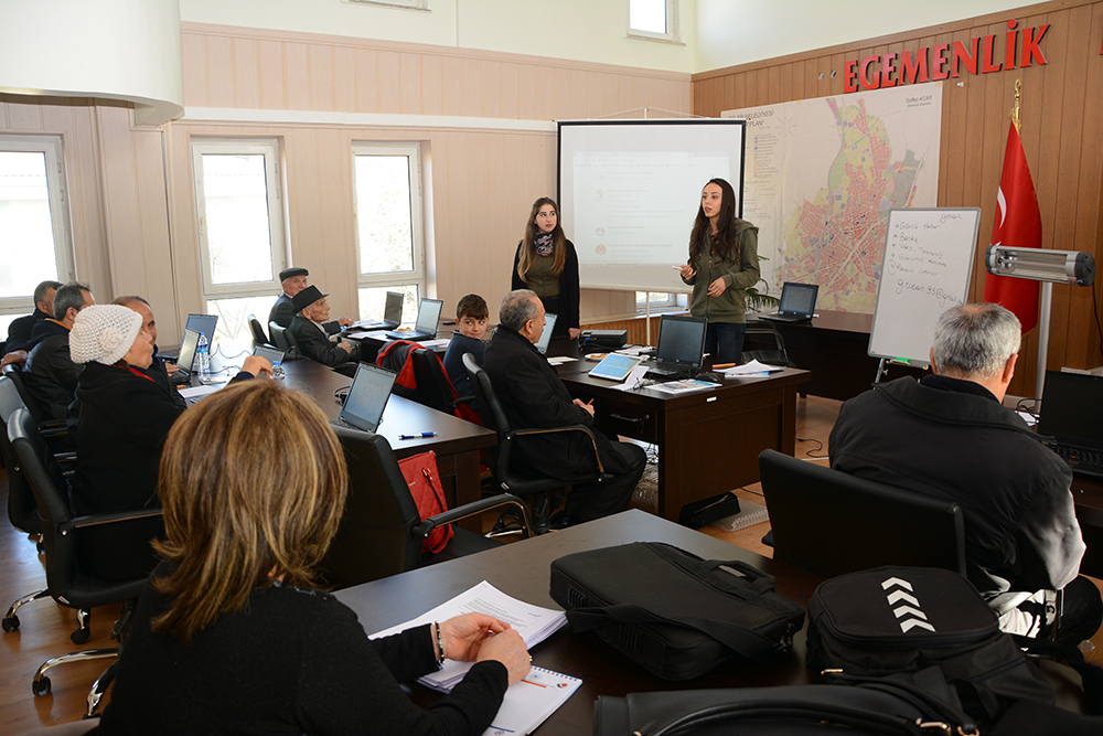 Kursa katılanlar e devlet uygulamaları, online bankacılık işlemleri, doğru sosyal medya kullanımı ve güvenli internet kullanımı üzerine eğitim aldılar.●Arif Yağcı