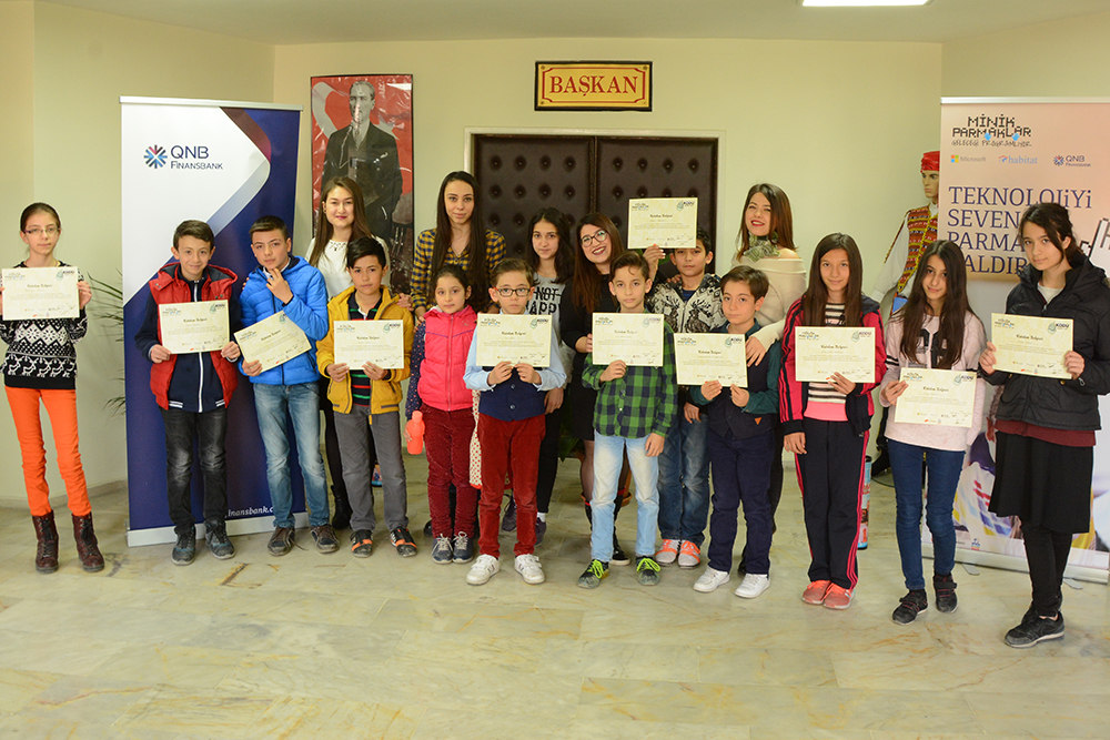 Dinar Belediyesi öncülüğünde QNB Finansbank, Microsoft Türkiye, Habitat Derneği ortaklığında hayata geçirilen Minik Parmaklar Geleceği Programlıyor’ projesinde yaşları 8-12 arasında değişen 90 çocuğa yazılım kursu verildi.