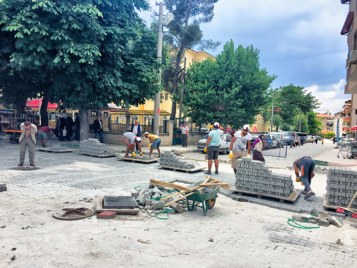 Dinar’da sokak ve caddelere parka taşı döşeniyor