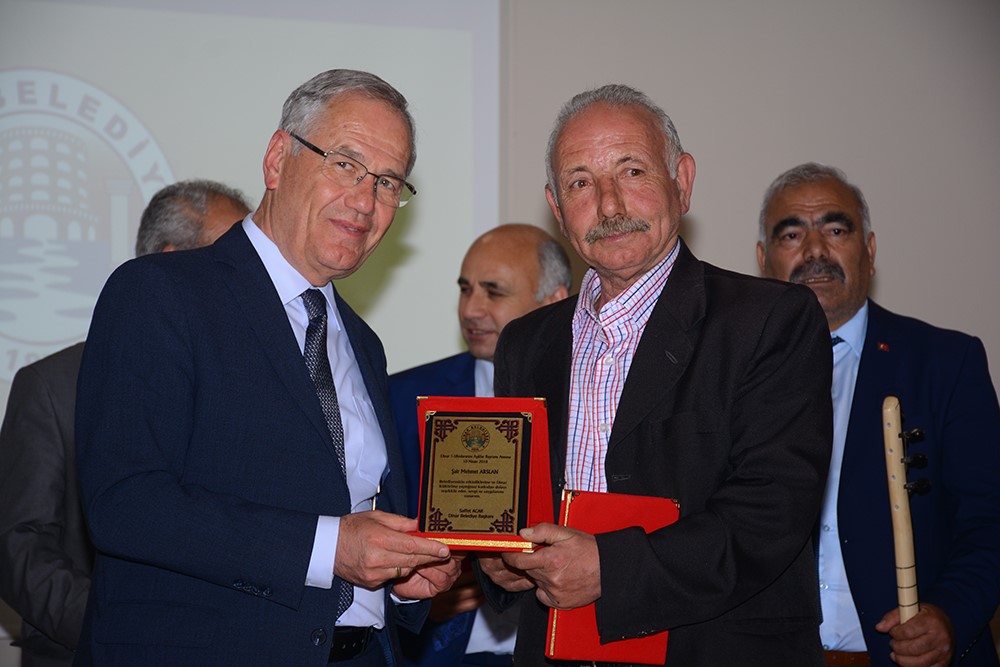 Programın sonunda Dinar’ın ilçe oluşunun 110 nuncu yılı anısına katılımcı aşıklara, Dinarlı şairlere Belediye Başkanı Saffet Acar tarafından plaket takdim edildi. Ayrıca Türk Ocakları Dinar Şubesinin kuruluşunun 100 cü yılı anısına hazırlanan hizmet plaketleri eski Halk Eğitim Merkezi Müdürleri Yaşar Sağlam ve Eyüp Şahin’e verildi.