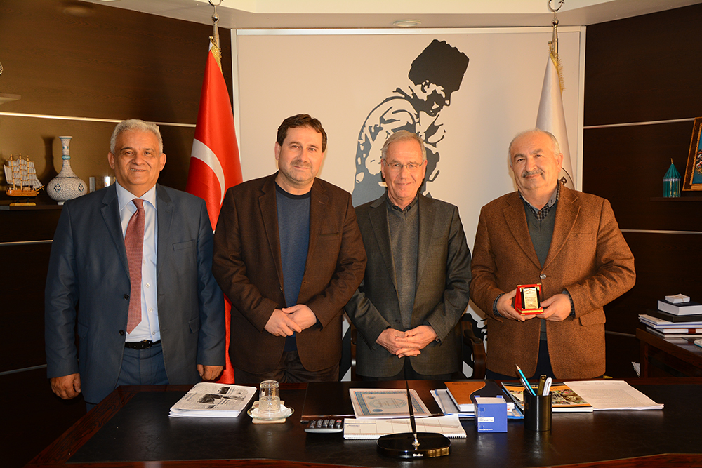 Afyon Kocatepe Üniversitesi Dinar Meslek Yüksek Okulu (DMYO) Müdürü Yrd. Doç. Dr. Hayrettin Ertan, Dinar Yüksek Öğretimi Destekleme Derneği Başkanı Mehmet Öztürk ve Başkan Yardımcısı Galip Uluağaç katkı ve desteklerinden dolayı Belediye Başkanı Saffet Acar’a teşekkür ziyaretinde bulundu. Dinar Meslek Yüksek Okuluna; Yabancı Dil Laboratuvarı, belediye ayağı ve şahsı olarak yapılan sayısız katkı ve destek için Başkan Saffet Acar’a DMYO Müdürü Yrd. Doç. Dr. Hayrettin Ertan tarafından teşekkür belgesi, Dinar Yüksek Öğretimi Destekleme Derneği Başkan Yardımcısı Galip Uluağaç tarafından ise plaket takdim edildi. Acar, yapılan ziyaretten dolayı memnuniyetini ifade ederek, Meslek Yüksek Okulun ve Yüksek Öğretimi Destekleme Derneğinin her zaman yanında ve destekçisi olduğunun mesajı verdi.
