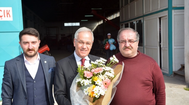 yerde olduğu gibi burada da sanayi esnafı Ali Akpınar tarafından çiçeklerle karşılandı. Yeni Sanayi