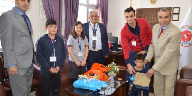 Şehit Piyade Uzman Çavuş Selçuk Gürdal Ortaokulu öğrencileri Dinar T Tipi Kapalı Ceza İnfaz Kurumunda annesinin yanında kalan çocuğa giysi, oyuncak ve maddi yardımda bulundu