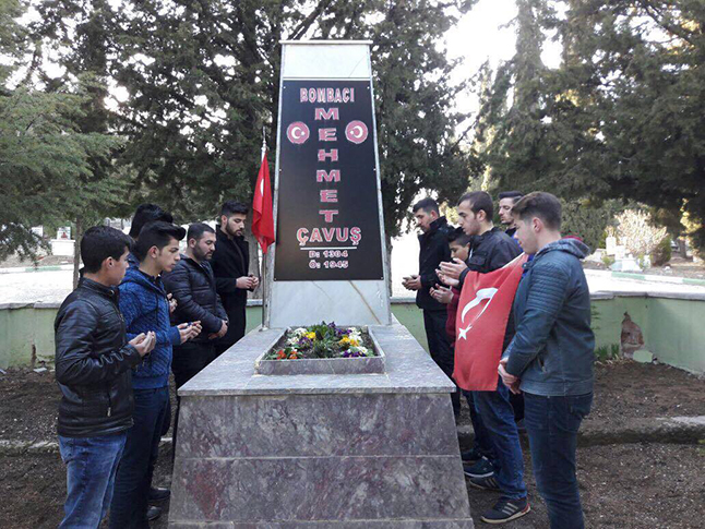 Dinar Ülkü Ocakları üyeleri, 18 Mart Çanakkale Deniz Zaferi Programı kutlamaları kapsamında Çanakkale Savaşı kahramanlarından Bombacı Mehmet Çavuş’u n mezarını ziyaret ederek, Fatiha okudu. Dinar Ülkü Ocakları Başkanı Fahrettin Çağlar’ın öncülüğünde ülkücüler ve üniversite teşkilatına mensup örenciler asri mezarlıkta bulunan Çanakkale Kahramanı Merhum Bombacı Mehmet (İpek) Çavuş’un anıtının ardından şehitliği de ziyaret ettiler.◄FADİME AKAR